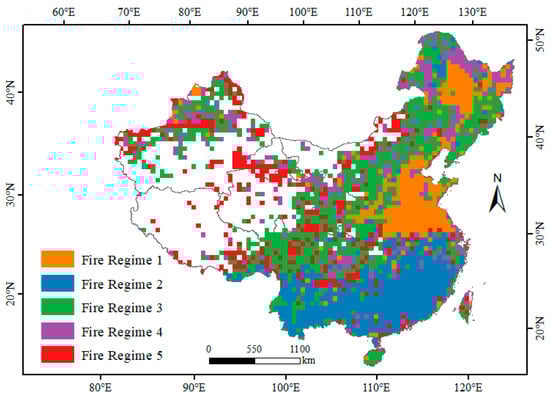 In this study, the spatial distribution pattern of FR and its driving mechanism in China were revealed by multi-source remote sensing data and a spatial clustering method. The five types of fire zones show significant differences in frequency, intensity, seasonality, and spatial distribution: fires in the Northeast China Plain and North China Plain cropland areas (FR 1) exhibit a bimodal distribution, with the peak period concentrated in April and June, respectively; the southern forest and savanna region (FR 2) is dominated by high-frequency, small-scale, unimodal fires, peaking in February; the central grassland region (FR 3) experiences high-intensity, low-frequency fires, with a peak in April; the east central forest region (FR 4) is characterized by low-frequency, high-intensity fires; and the western grassland region (FR 5) experiences low-frequency fires with significant inter-annual fluctuations. The results demonstrate that FST constitutes a critical factor in the FR classification system in China. The distinct seasonal patterns observed across the five fire zones demonstrate that FST effectively captures the fundamental characteristics of fire. These seasonal signatures provide crucial insights for fire prediction and risk assessment. Furthermore, the incorporation of FST significantly enhances both the ecological relevance and practical utility of fire classification systems.