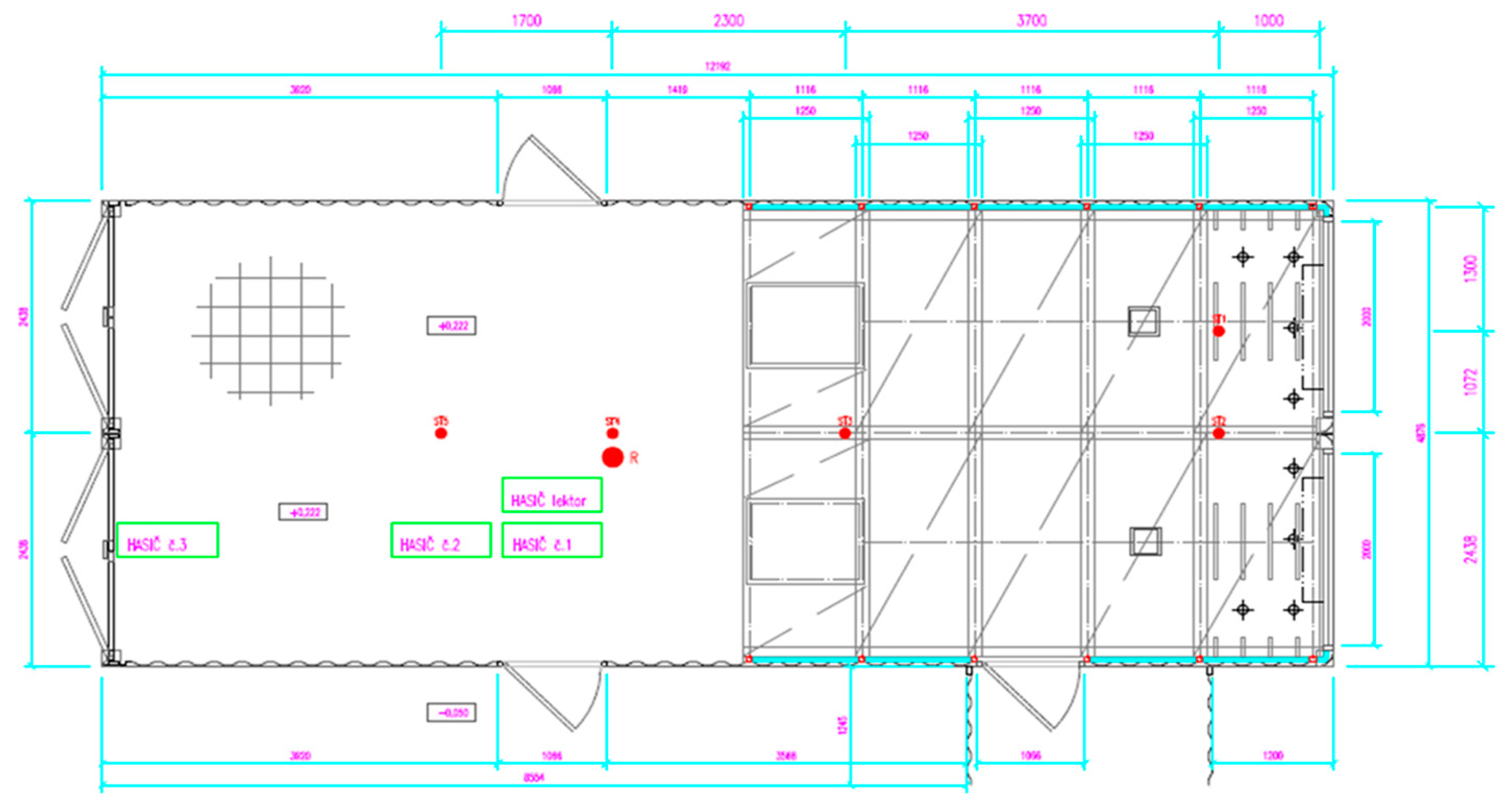 - Tomášek, A. The Training and Observation Simulator, Stages I and II, Will Accompany the Technical Report for the Project Documentation for a Building Permit; Fire Brigade of the Czech Republic: Prague, Czech Republic, 2010. [Google Scholar]