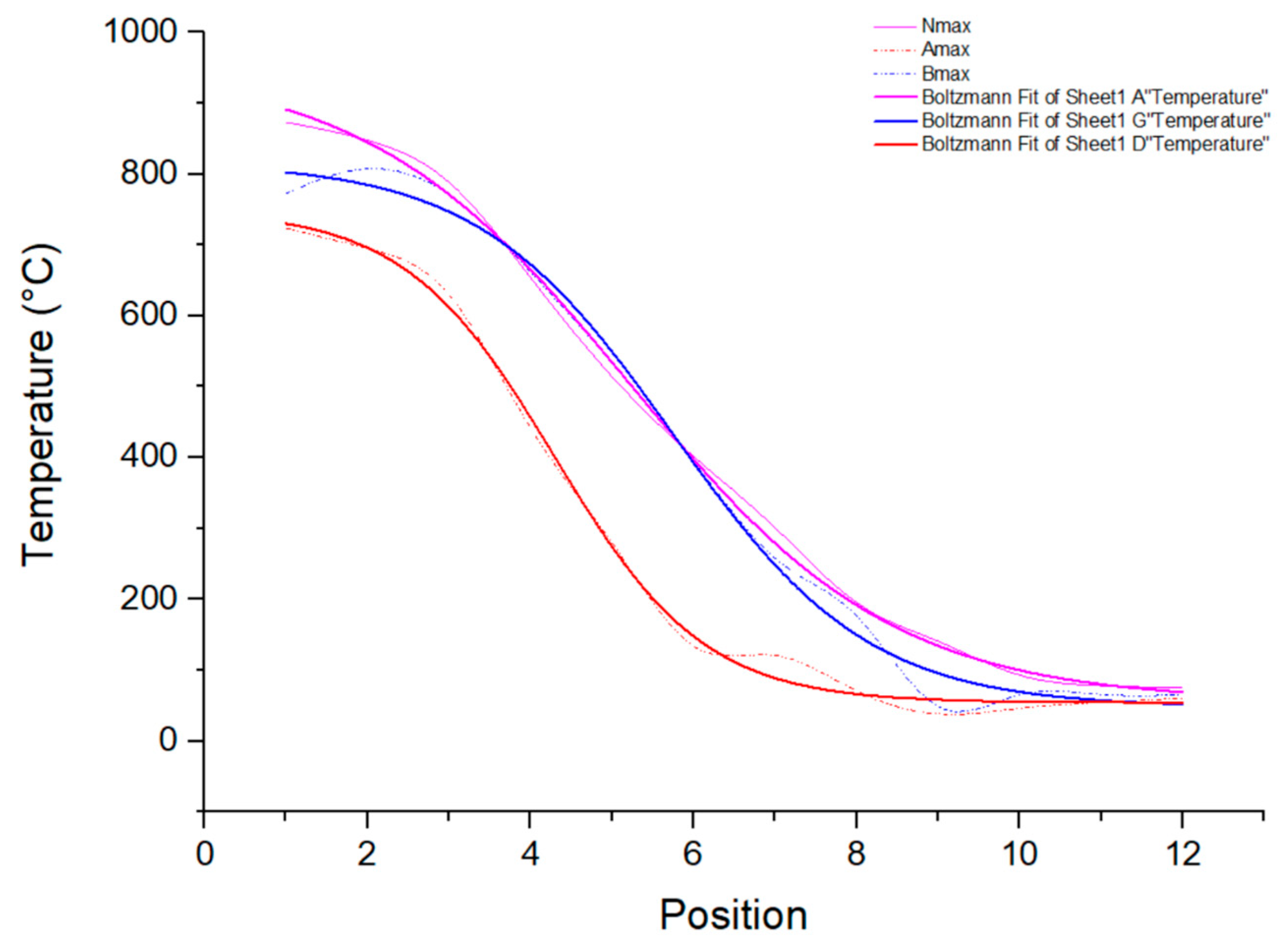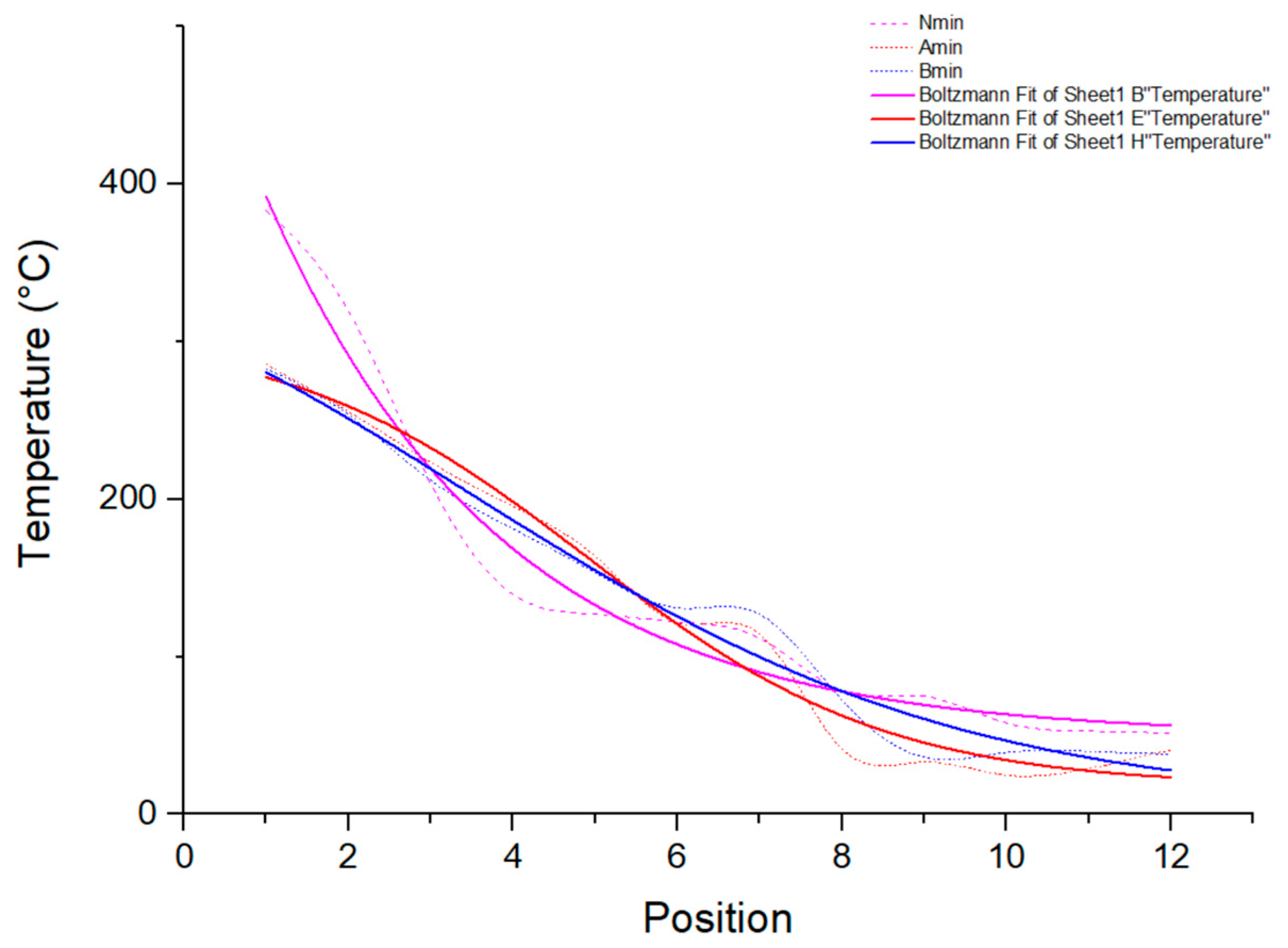 3.1. Evaluation of Vertical Temperature Profiles Using Sigmoidal Modeling
