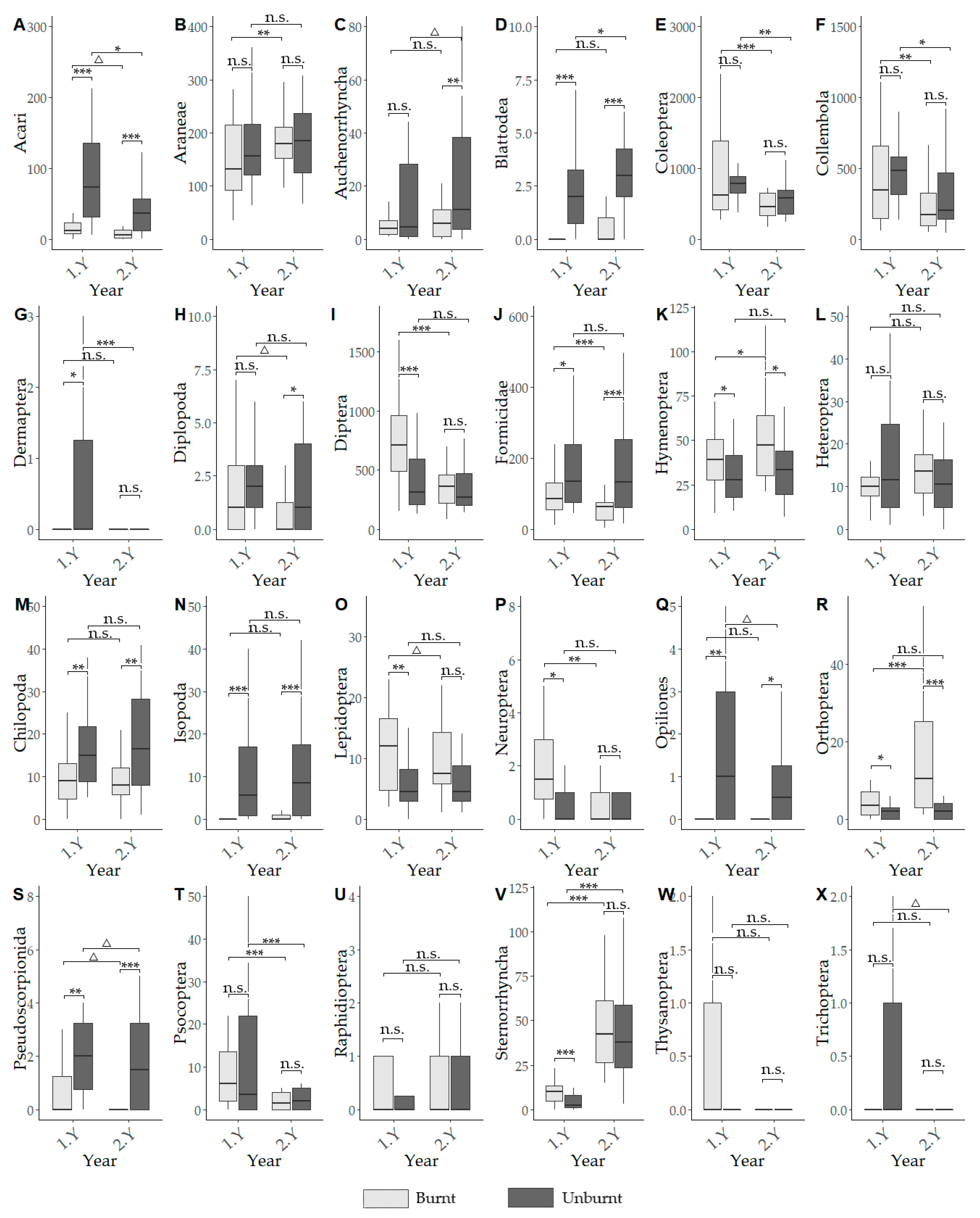 Two-Year Post-Fire Abundance of Arthropod Groups Across Different Types of Forest in Temperate Central Europe