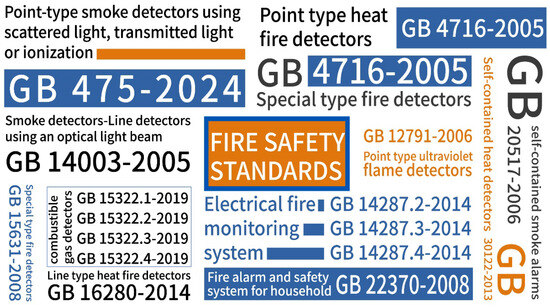 Fire safety industry standards are mandatory technical specifications and standards specifically formulated for the fire protection sector, covering areas such as firefighting equipment, emergency response procedures, and safety management [1,2,3]. The formulation and implementation of these standards are of great significance for ensuring public safety, improving rescue efficiency, standardizing industry practices, and promoting technological innovation and development [4]. They serve as a crucial guarantee of the scientific, standardized, and orderly conduct of fire rescue work [5]. As of the end of August 2024, there were 1061 current fire safety standard specifications in China, including 45 national engineering construction fire safety technical standards, of which 145 were mandatory national standards, 143 were recommended national standards, and three were national standardization guidance technical documents. In addition, there were 116 mandatory industry standards, 69 recommended industry standards, and 540 local standards. Furthermore, the National Fire Standardization Technical Committee (TC113) is responsible for managing 291 national fire standards and 185 industry standards, covering areas such as fireworks fire prevention, firefighting and rescue, fire protection products and quality supervision, and fire protection prerequisites [6], as shown in Figure 1. In summary, in the field of fire safety, there are numerous industry standards, but they lack effective integration and organization [7], resulting in severe information fragmentation [8] and a lack of comprehensive coordination [9]. With the systematic research on “Smart Fire Protection” and the rapid iteration and updating of AI and digital technologies, it is particularly important to establish a highly informatized sharing system and related standards, further rationalize the fire protection standards that have been issued and are being formulated [10], prevent various fire protection standards from overlapping and conflicting with each other, and lay a solid foundation for the long-term development of fire rescue informatization.