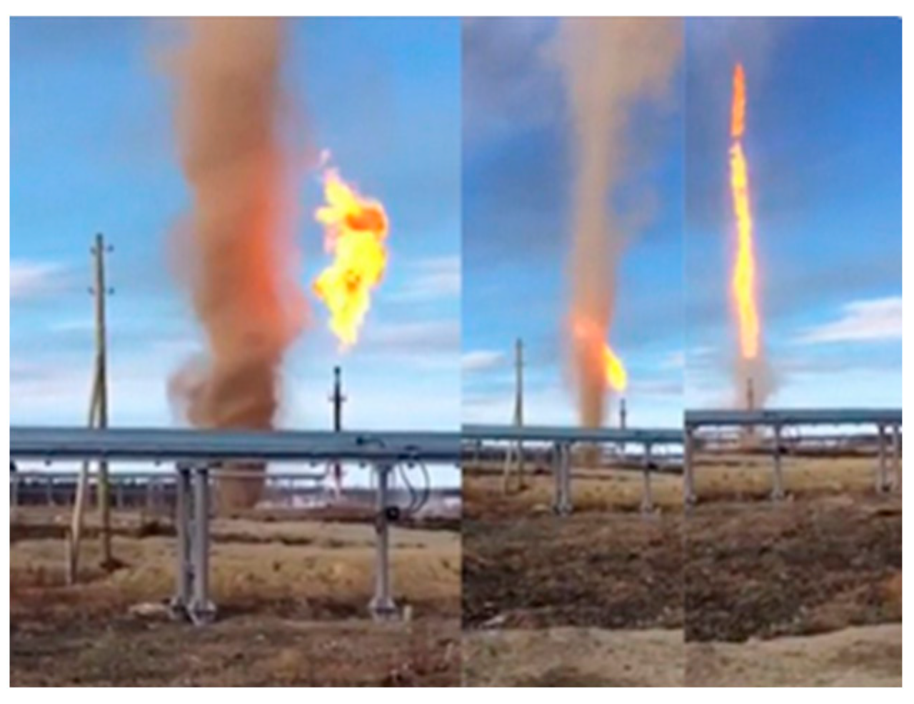 - Zhou, K.; Nie, X.; Wang, C.; Wang, Y.; Niu, H. Jet fires involving releases of gas and solid particle. Process Saf. Environ. 2021, 156, 196–208. [Google Scholar] [CrossRef]