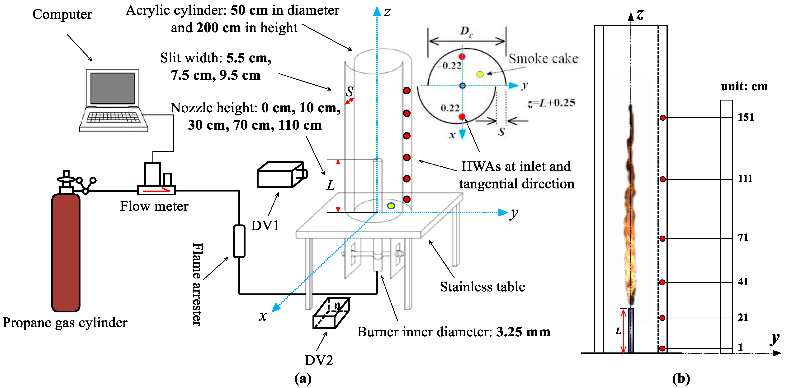 - Wang, P.; Liu, N.; Zhang, L.; Bai, Y.; Satoh, K. Fire whirl experimental facility with no enclosure of solid walls: Design and validation. Fire Technol. 2015, 51, 951–969. [Google Scholar] [CrossRef]