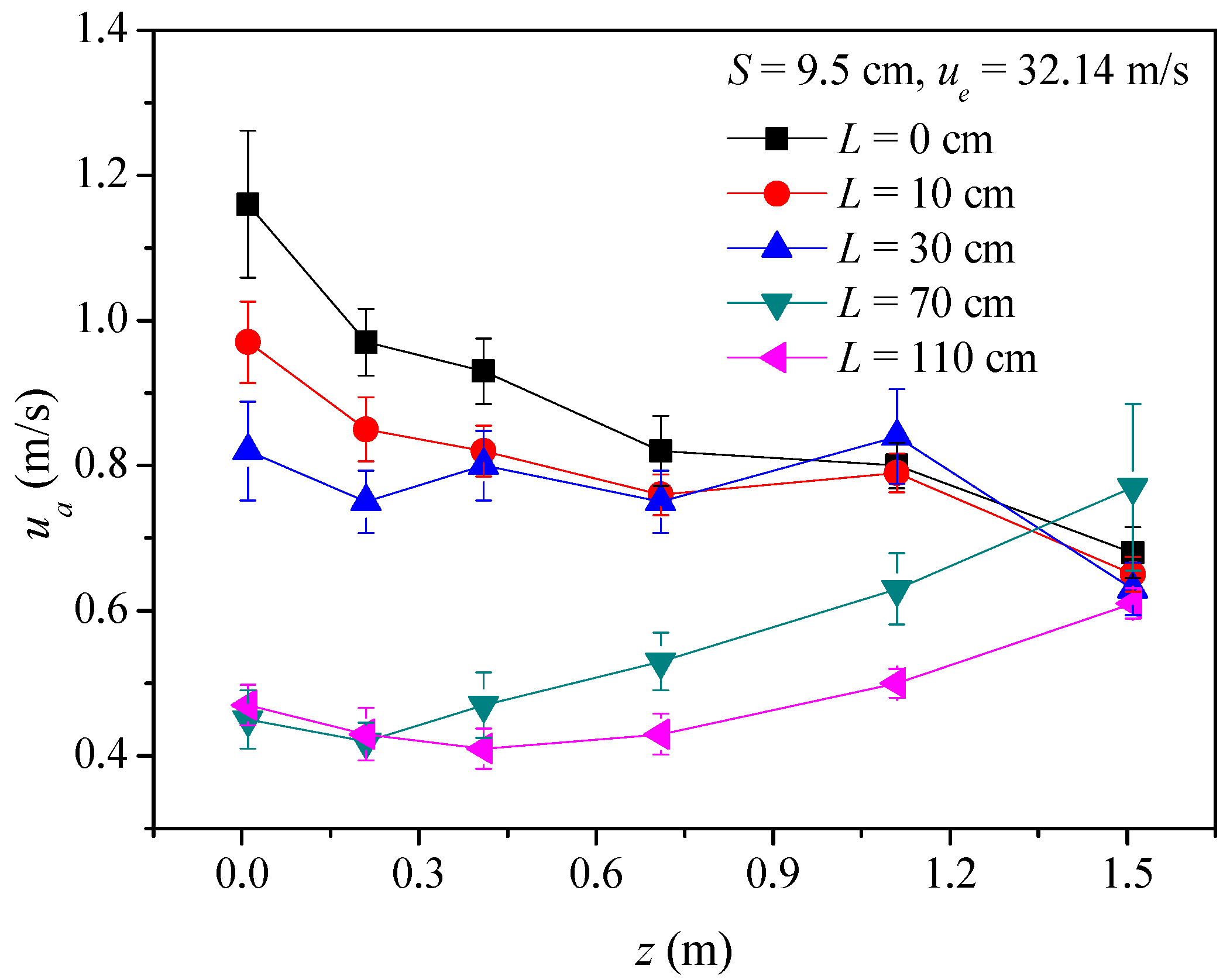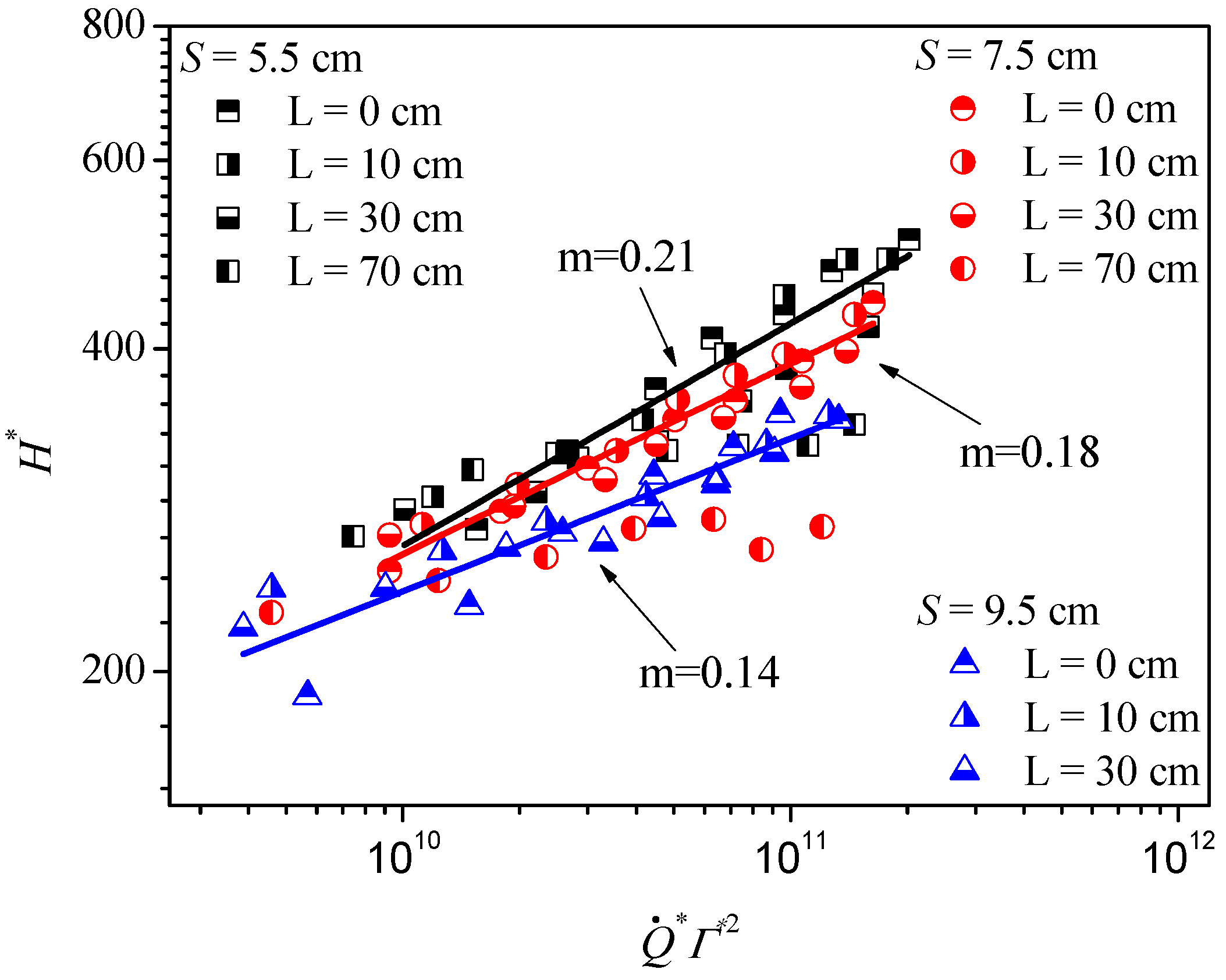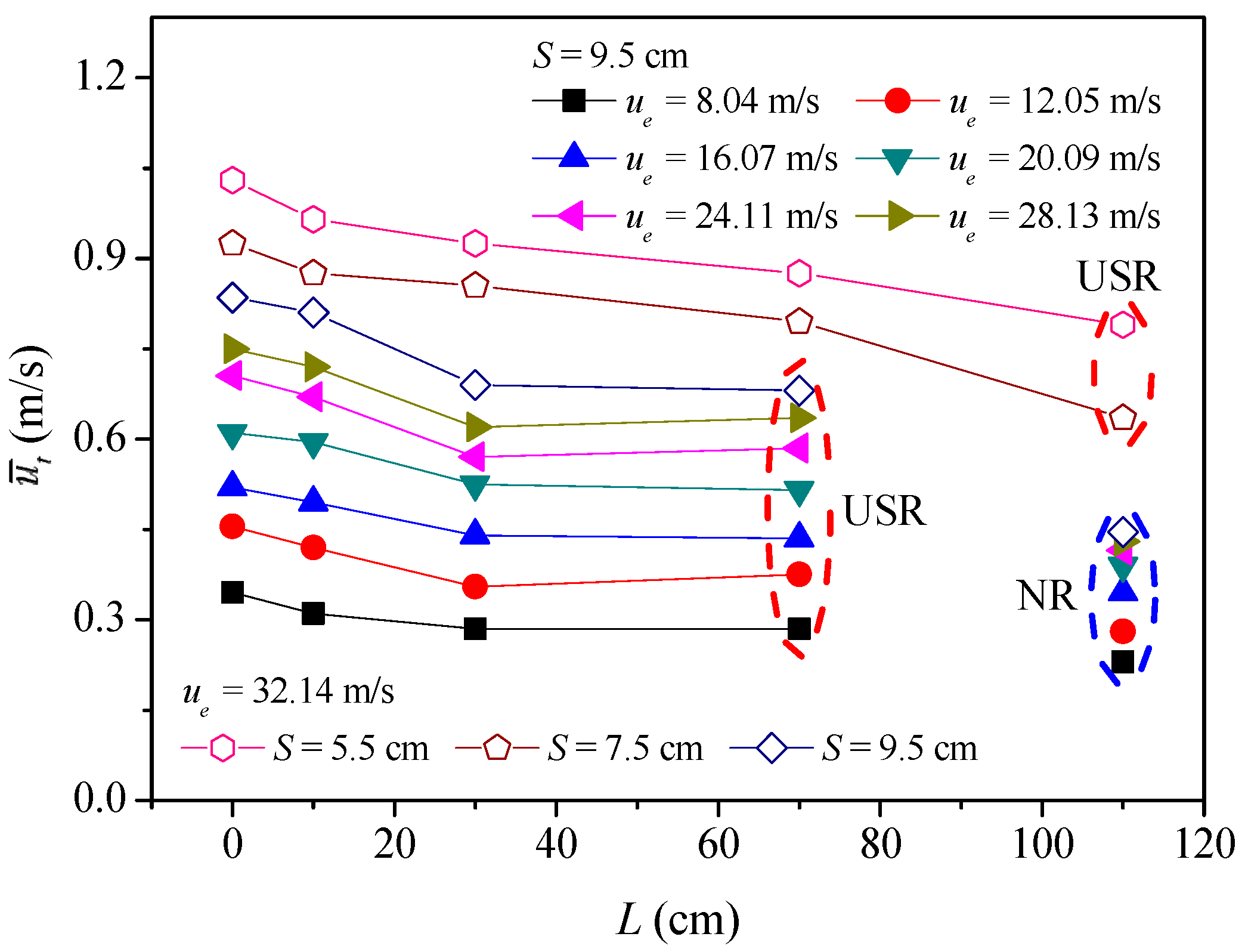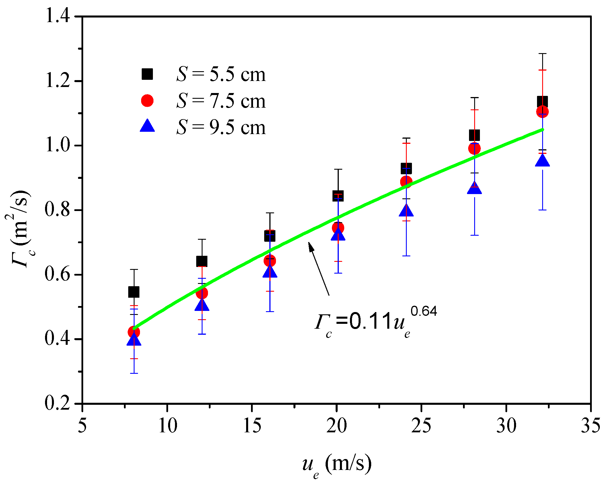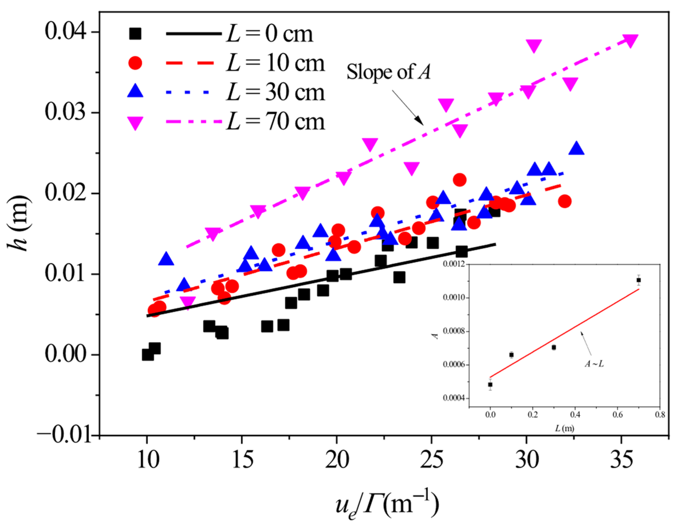 L (cm) | ue (m/s) | Re | Fr | S (cm) | Γ (m2/s) | H (cm) | Wm (cm) | h (cm) | Status |