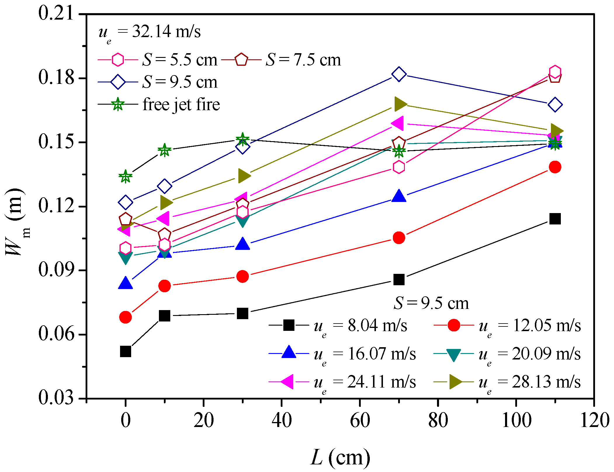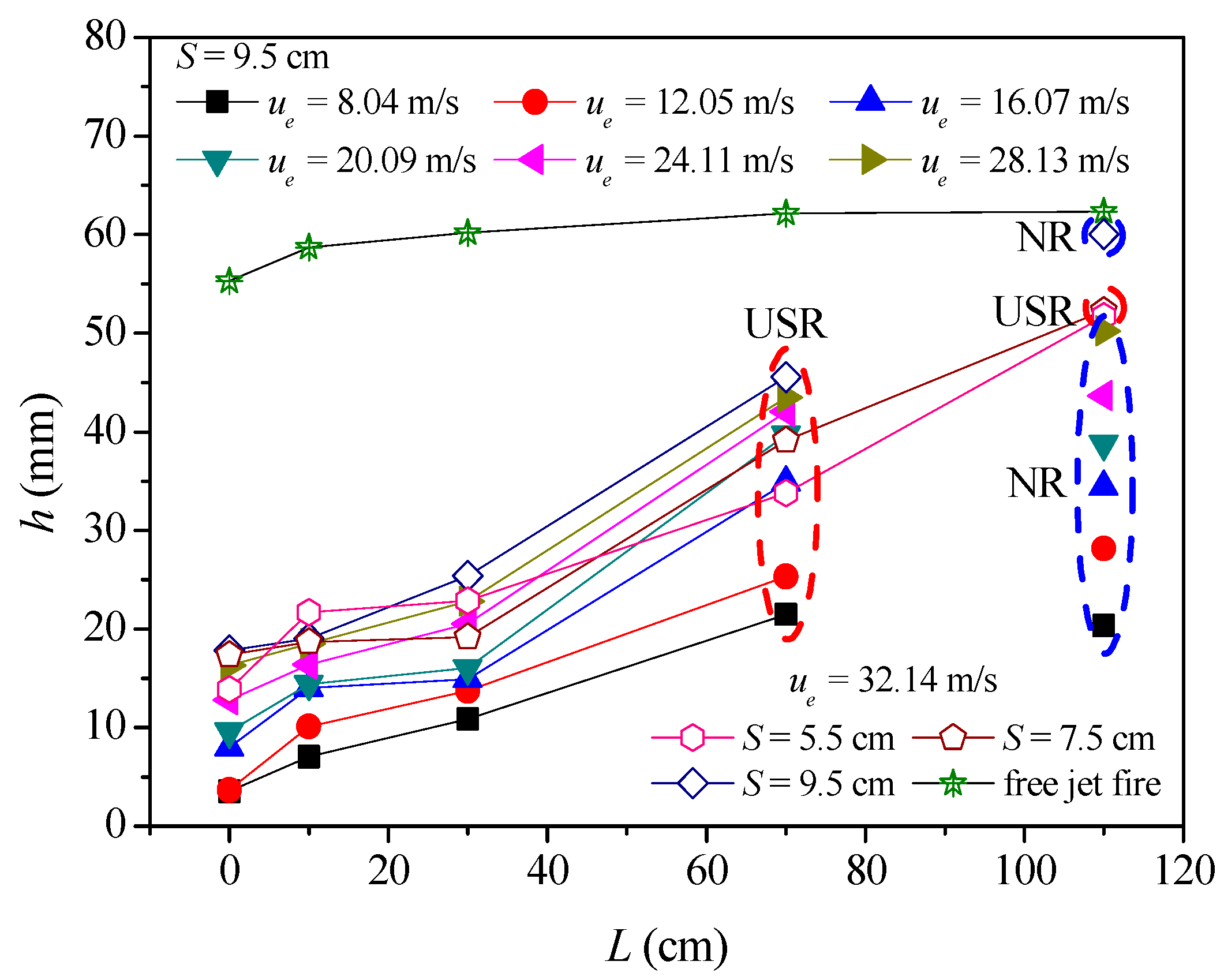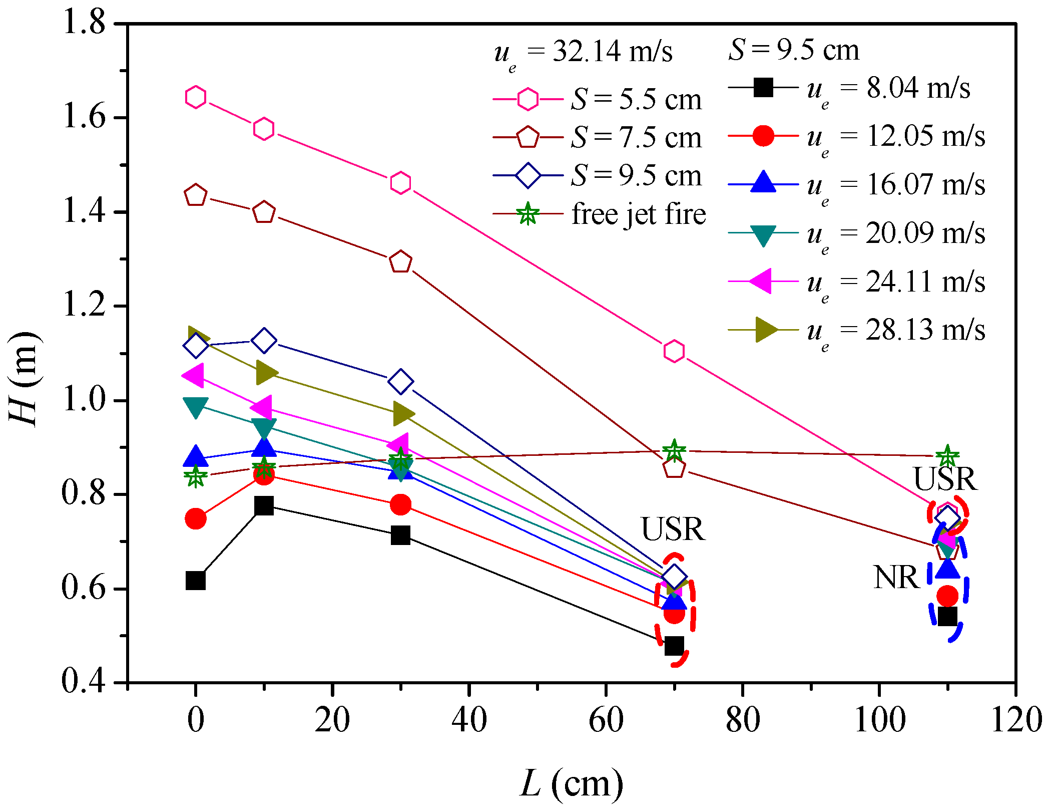 H | flame length (m) |