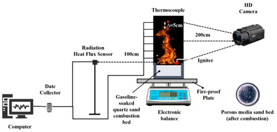 - Chao, C.Y.H.; Wang, J.H.; Kong, W. Effects of fuel properties on the combustion behavior of different types of porous beds soaked with combustible liquid. Int. J. Heat Mass Transf. 2004, 47, 5201–5210. [Google Scholar] [CrossRef]
