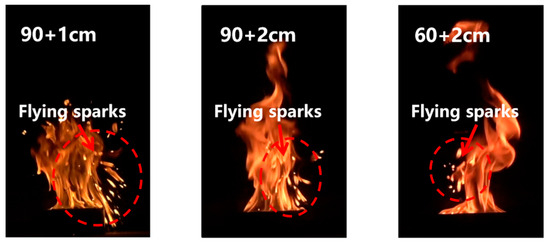 Furthermore, the splashing combustion phenomenon captured in Figure 3 primarily occurs under oil-saturated sand conditions during the critical transition when the free liquid layer nears depletion and the flame front contacts the sand-liquid interface. Vigorous boiling at this interface ejects sand particles and fuel droplets, significantly enhancing fire unpredictability and associated hazards.