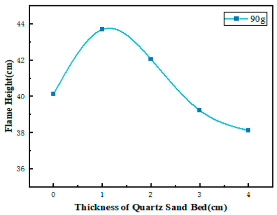Flame height diagram of 90 g gasoline immersed in porous media substrates of different thicknesses.
