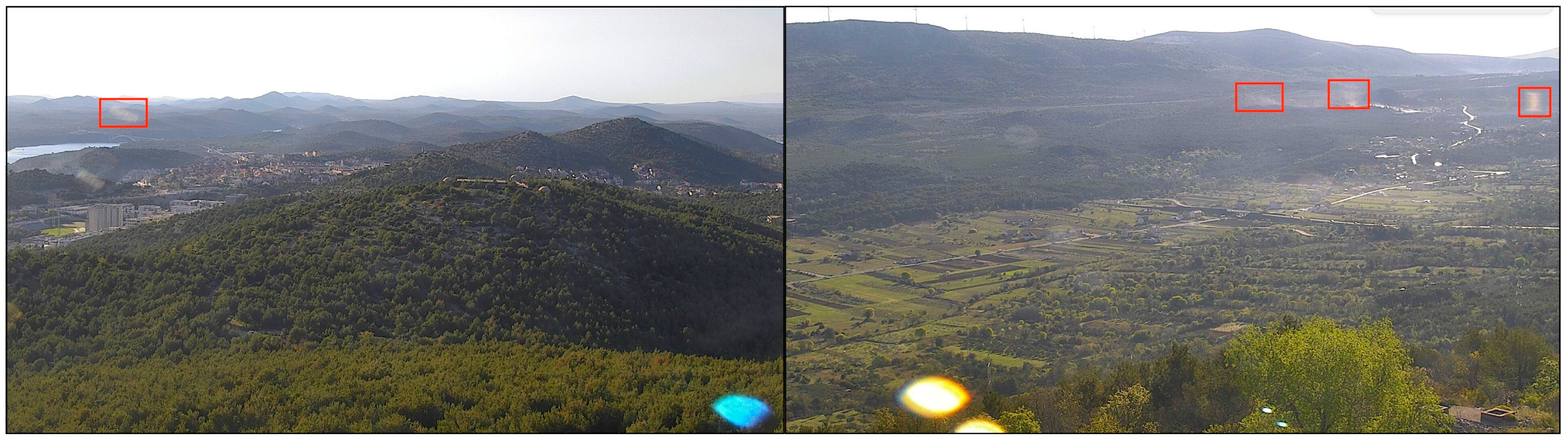 - Krstinić, D.; Šerić, L.; Ivanda, A.; Bugarić, M. Multichannel Data from Temporal and Contextual Information for Early Wildfire Detection. In Proceedings of the 2022 7th International Conference on Smart and Sustainable Technologies (SpliTech), Bol, Croatia, 20–23 June 2023; IEEE: New York, NY, USA, 2023. [Google Scholar]