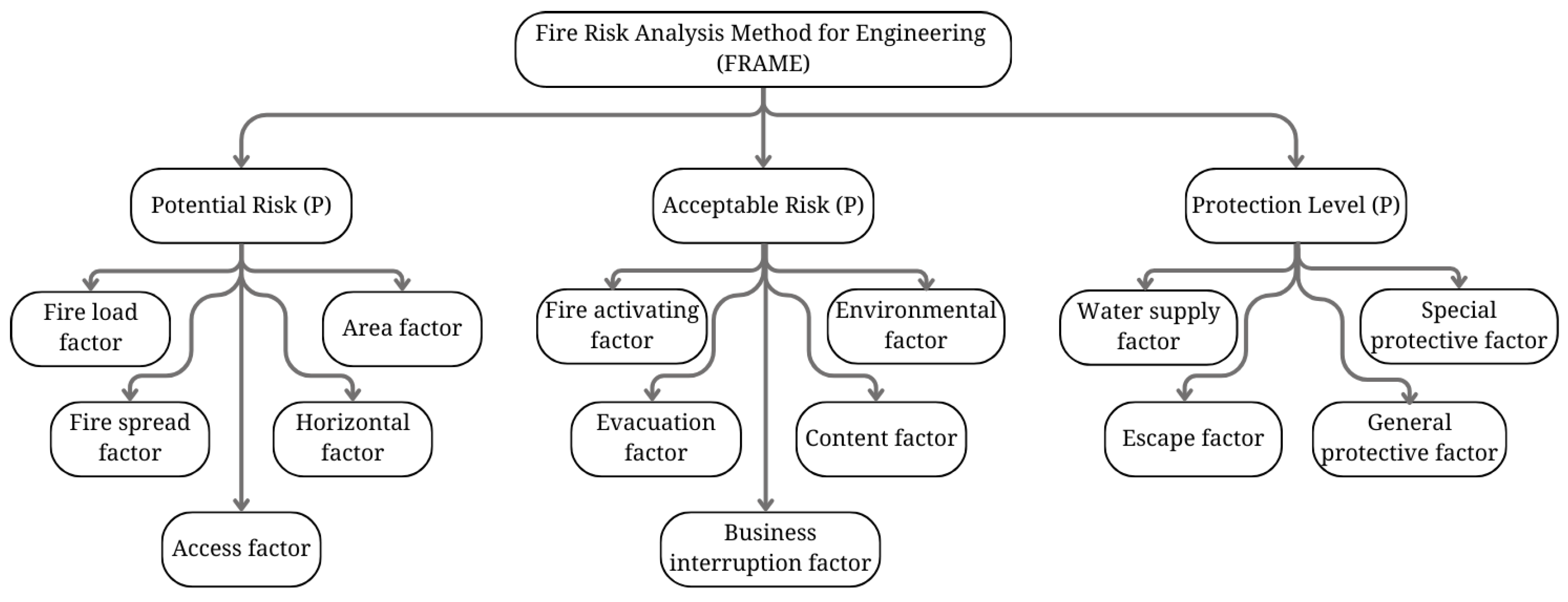 - Guo, S. Fire risk assessment for commercial buildings based on FRAME method. Proc. Iop Conf. Ser. Earth Environ. Sci. 2019, 223, 012048. [Google Scholar] [CrossRef]