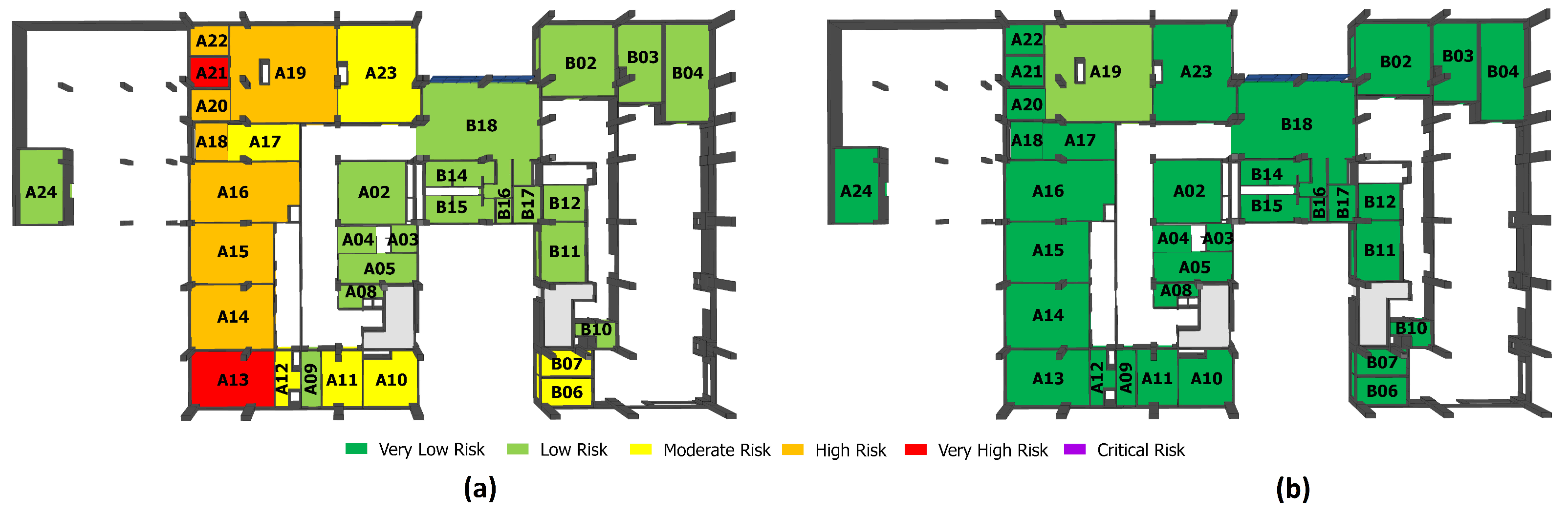 - Wang, L.; Li, W.; Feng, W.; Yang, R. Fire risk assessment for building operation and maintenance based on BIM technology. Build. Environ. 2021, 205, 108188. [Google Scholar] [CrossRef]