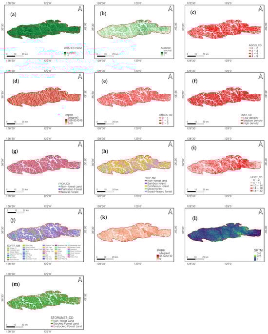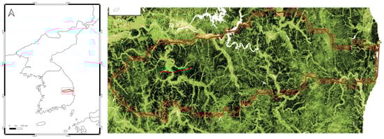 - Korea Forest Service. 2023 Forest Type Map (Stand Map); Database; Korea Forest Service: Daejeon, Republic of Korea, 2023. [Google Scholar]