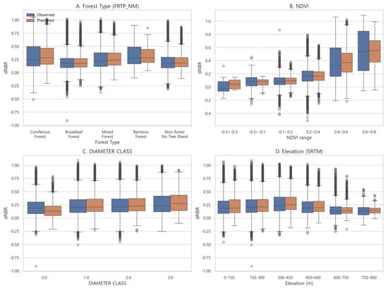 3.7. Comparison of Observed and Predicted dNBR Values by Key Variables
