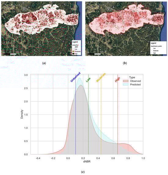 3.8. Distributional Differences Between Predicted and Observed dNBR Values