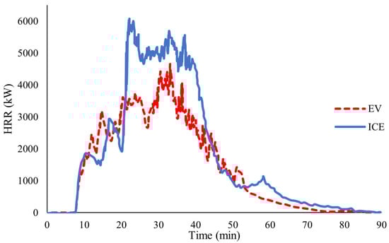 Comparison of the heat release rates for EVs and ICEVs reproduced from Lecocq et al. [33].