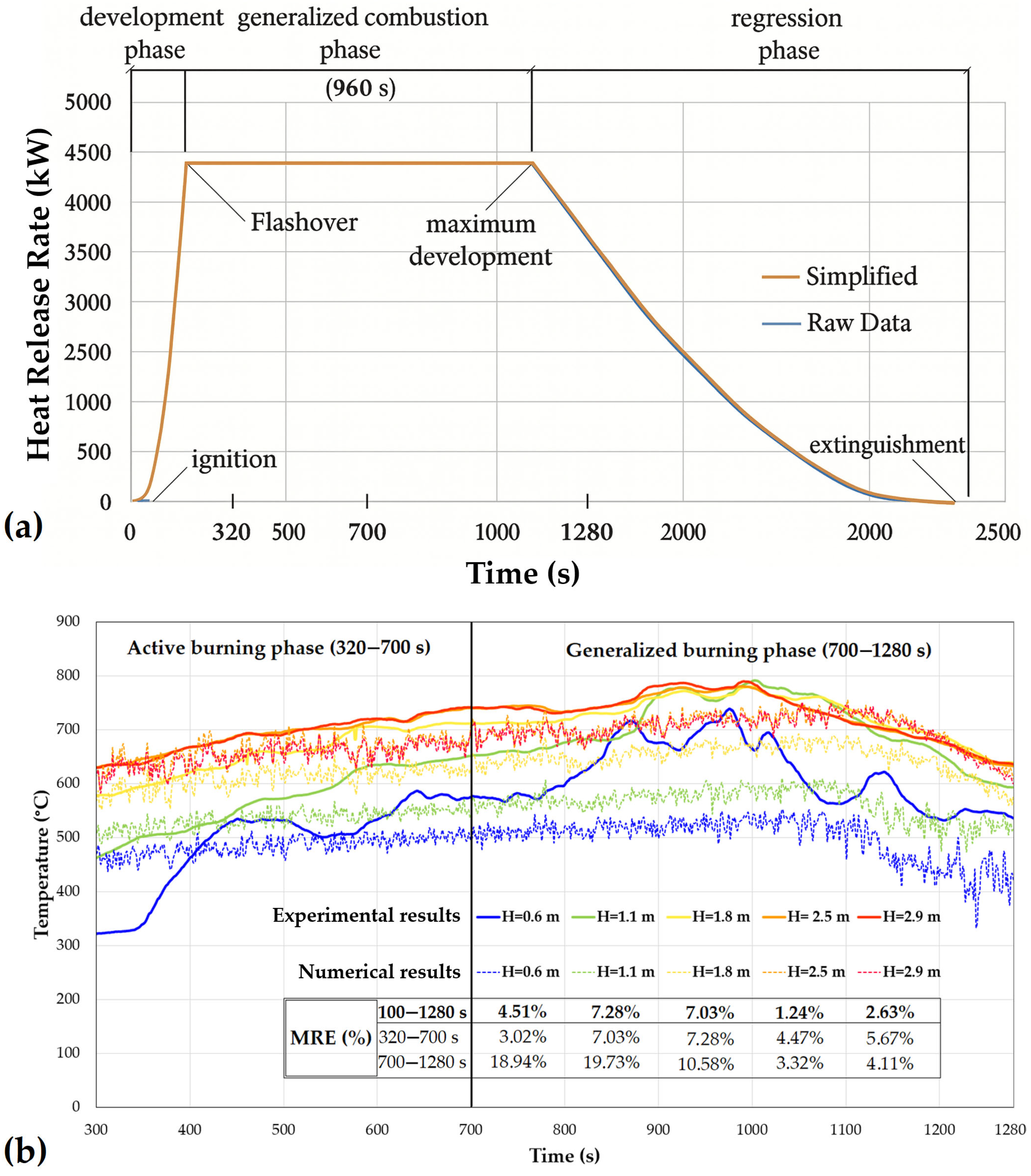 The comprehensive validation of the numerical fire model was based on a rigorous comparison between the simulation output and the empirical experimental data. The HRR (