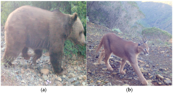 A total of eight mammal species were recorded in this study (Table 1). Among them were species of conservation priority for Türkiye and Mediterranean ecosystems, including the caracal (Caracal caracal) and the brown bear (Ursus arctos) (Figure 2).