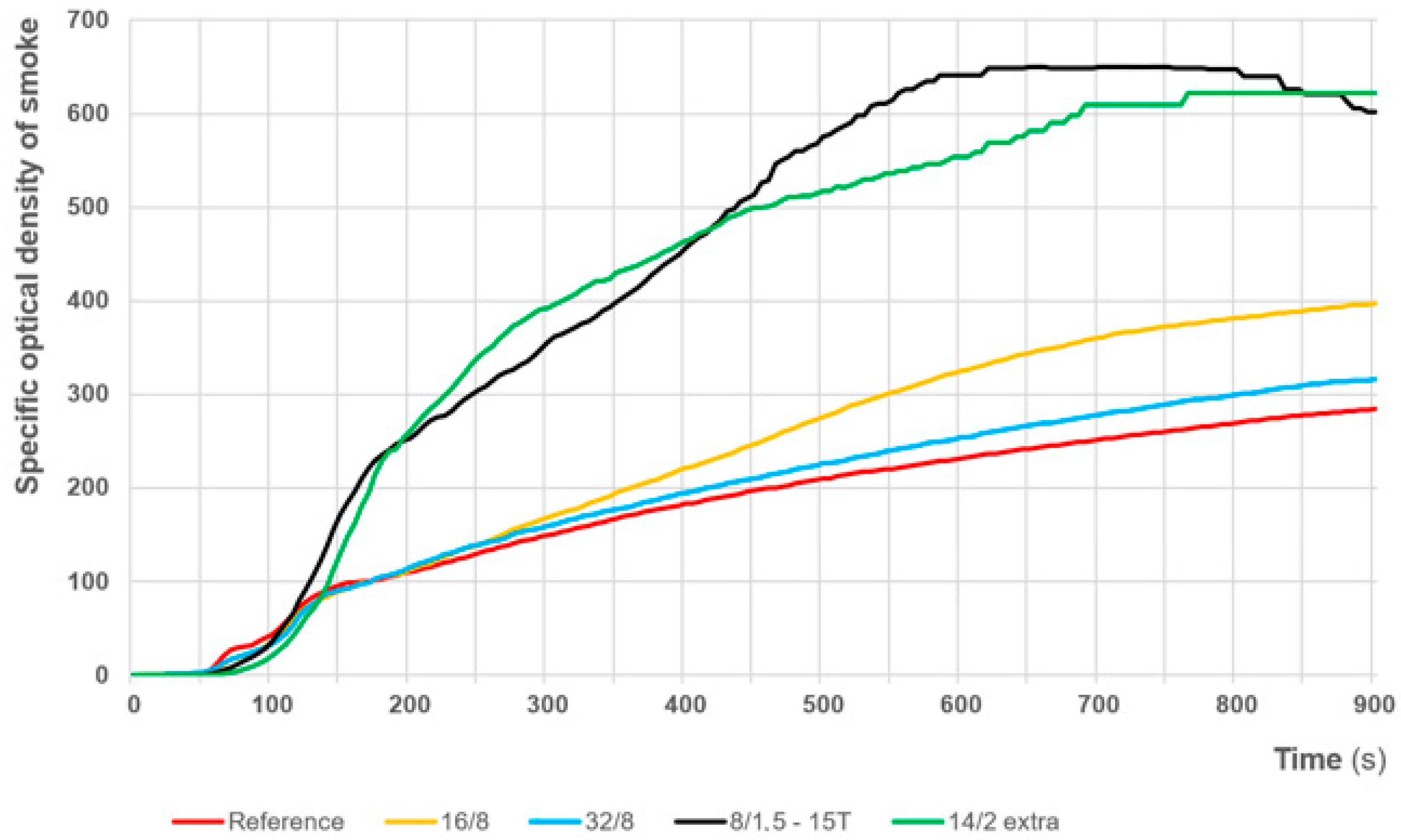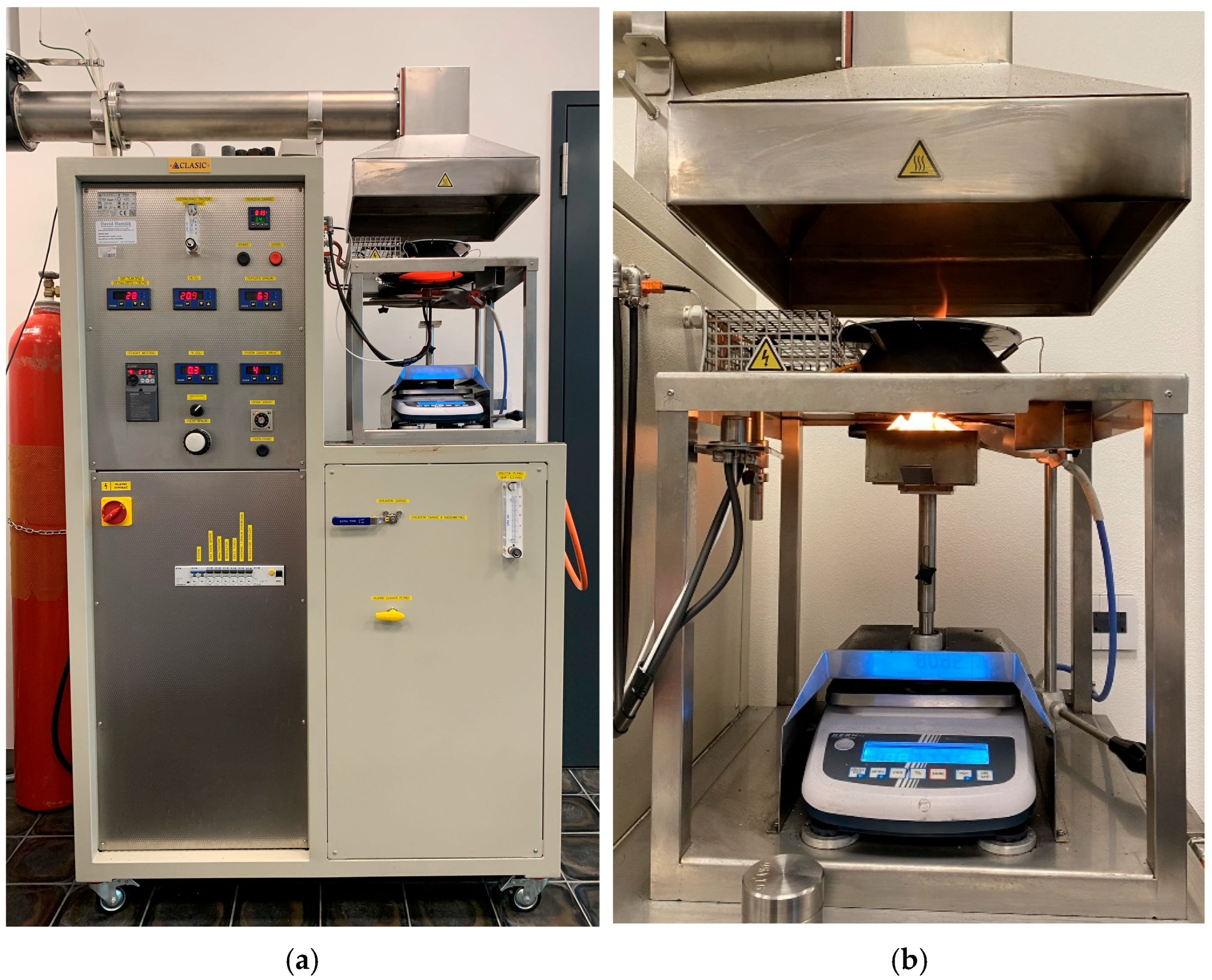 - ČSN EN ISO 5659-2; Plastics–Smoke Generation–Part 2: Determination of Optical Density by a Single-Chamber Test. Czech Standardization Agency: Prague, Czech Republic, 2017.