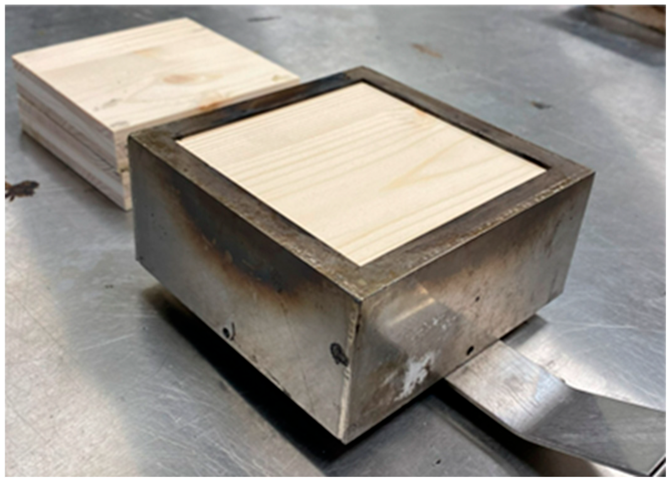 - Ira, J.; Hasalová, L.; Šálek, V.; Jahoda, M.; Vystrčil, V. Thermal Analysis and Cone Calorimeter Study of Engineered Wood with an Emphasis on Fire Modelling. Fire Technol. 2020, 56, 1099–1132. [Google Scholar] [CrossRef]