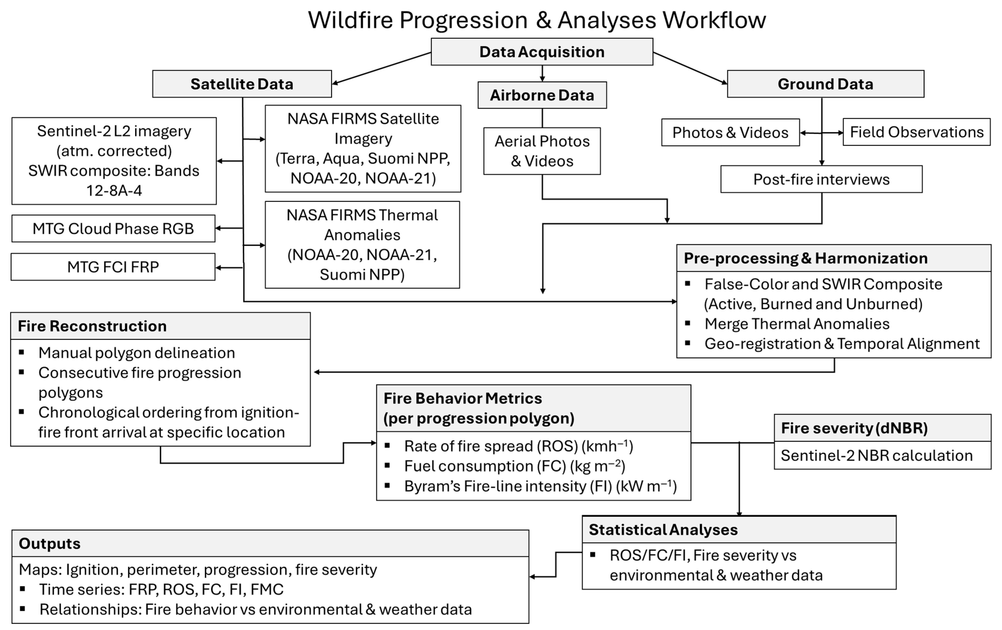 - Paugam, R.; Benali, A.; Harvie, J.; Meraner, A.; Andela, N.; Xu, W. Fire Behavior Monitoring Using Meteosat Third Generation, FCI-FireDyn Algorithm: Rate of Spread and Burnt Area Dynamics for Large Fire Event (Preprint). arXiv 2025, arXiv:2510.26677. [Google Scholar] [CrossRef]
