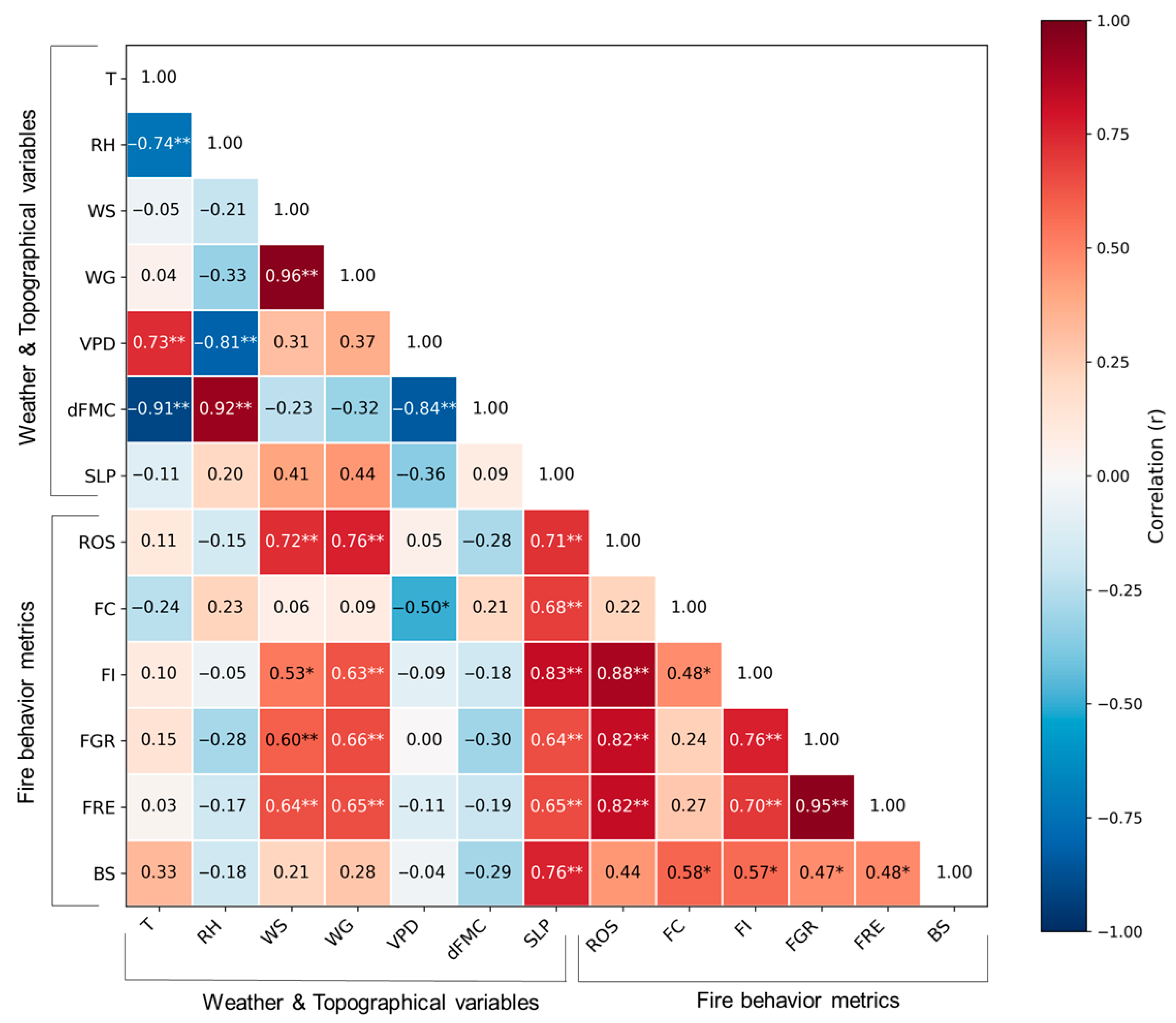 3.5. The Relations Between Weather, Topography, and Associated Fire Behavior Parameters