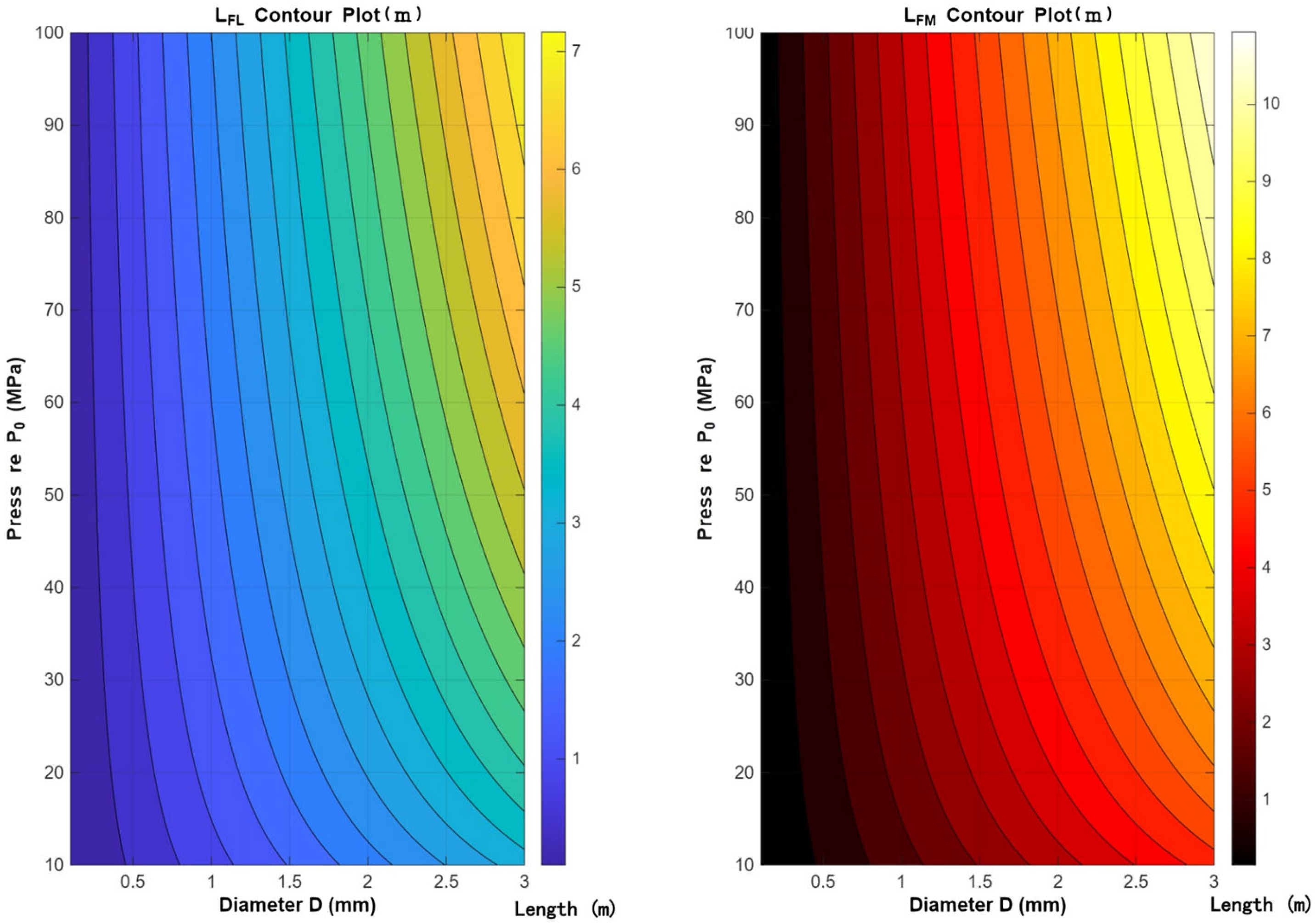 Figure 5 above presents a contour plot of the optimal-fit flame length (L
