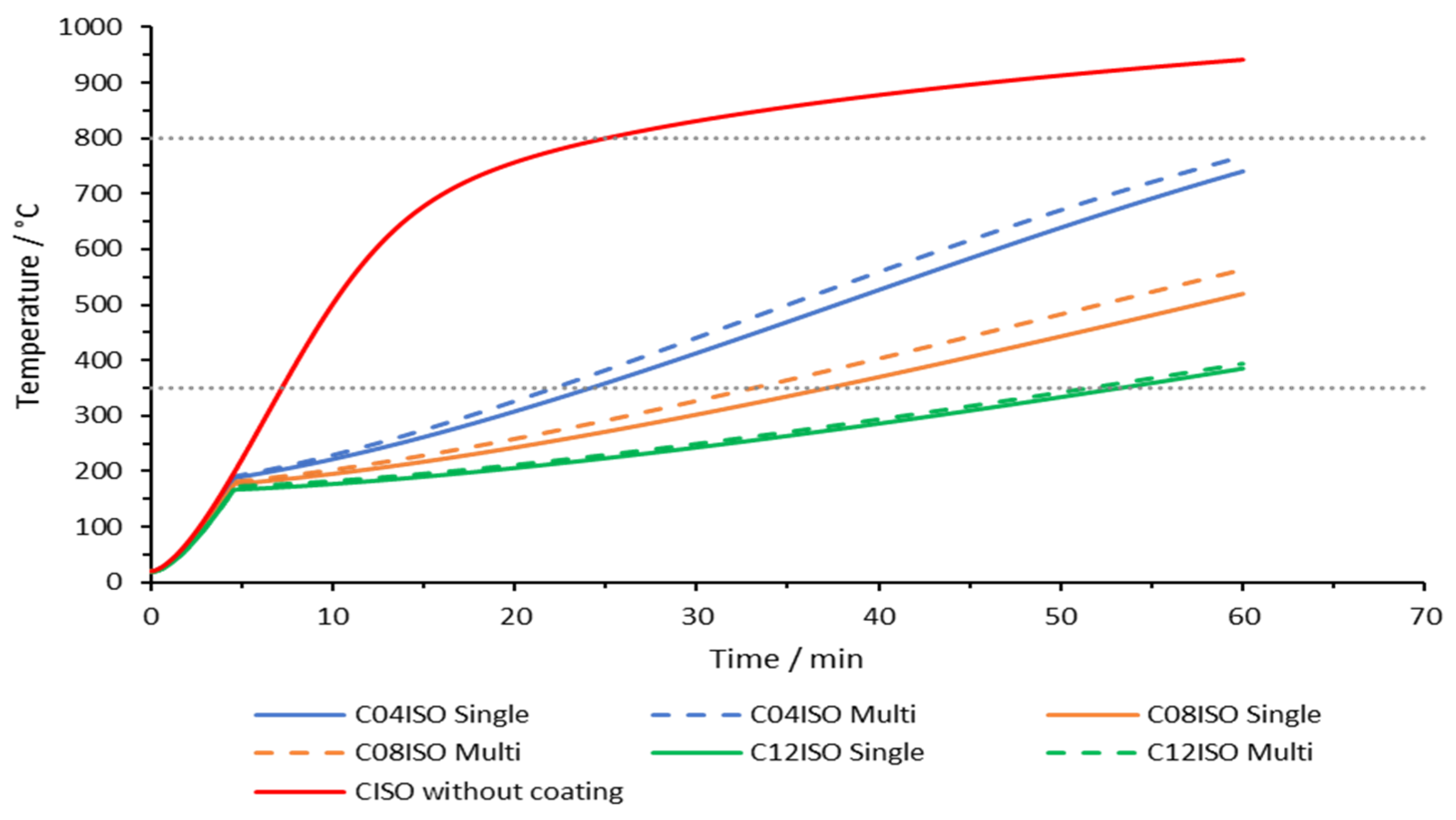 The coating temperature in the multi-layer model can be determined by the mean between the centre temperature of each layer and the steel temperature shown in Equation (31).