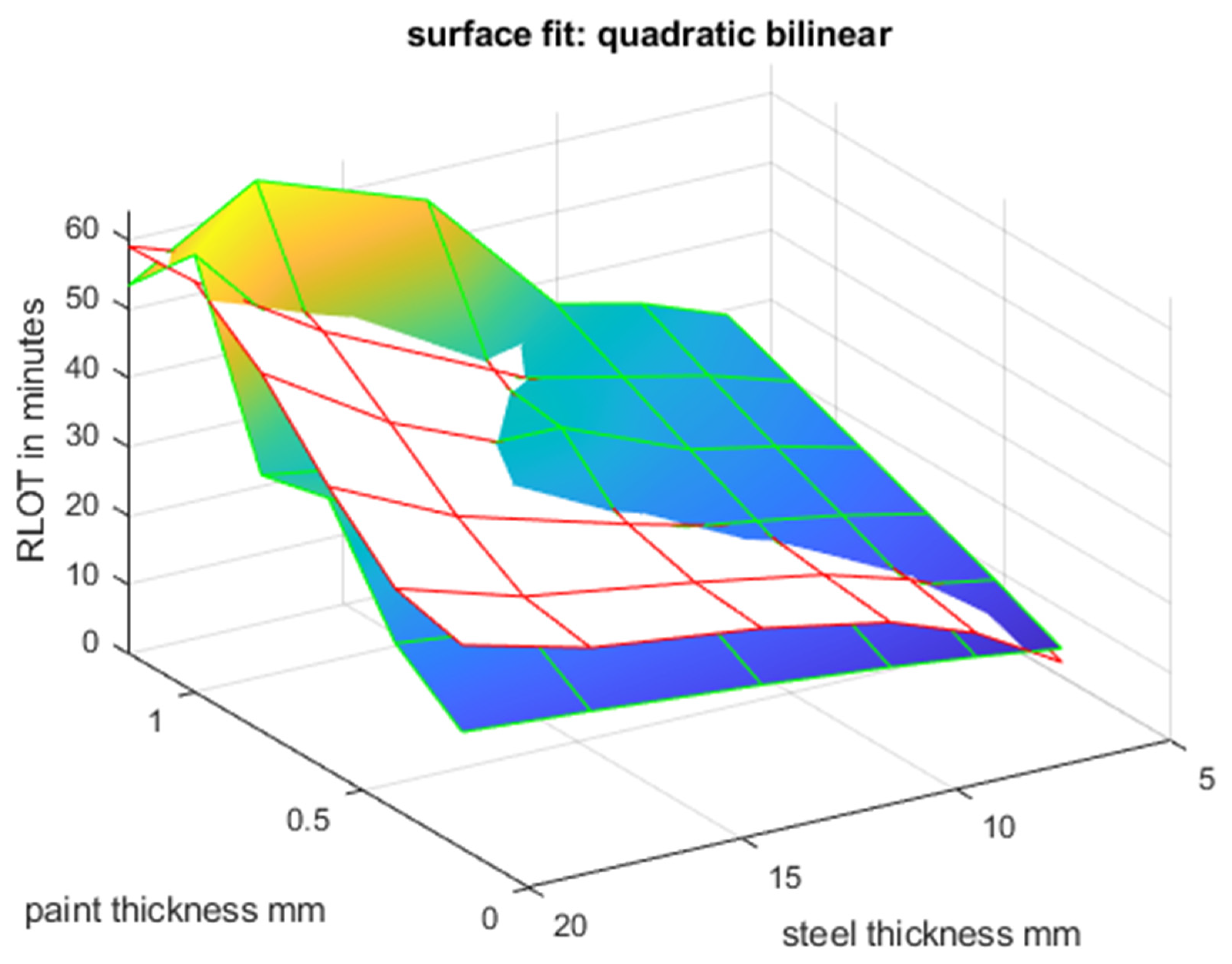 Figure 16, it is shown that a quadratic bilinear surface in Equation (35) does not provide the same fitting performance when compared to an ANN prediction in