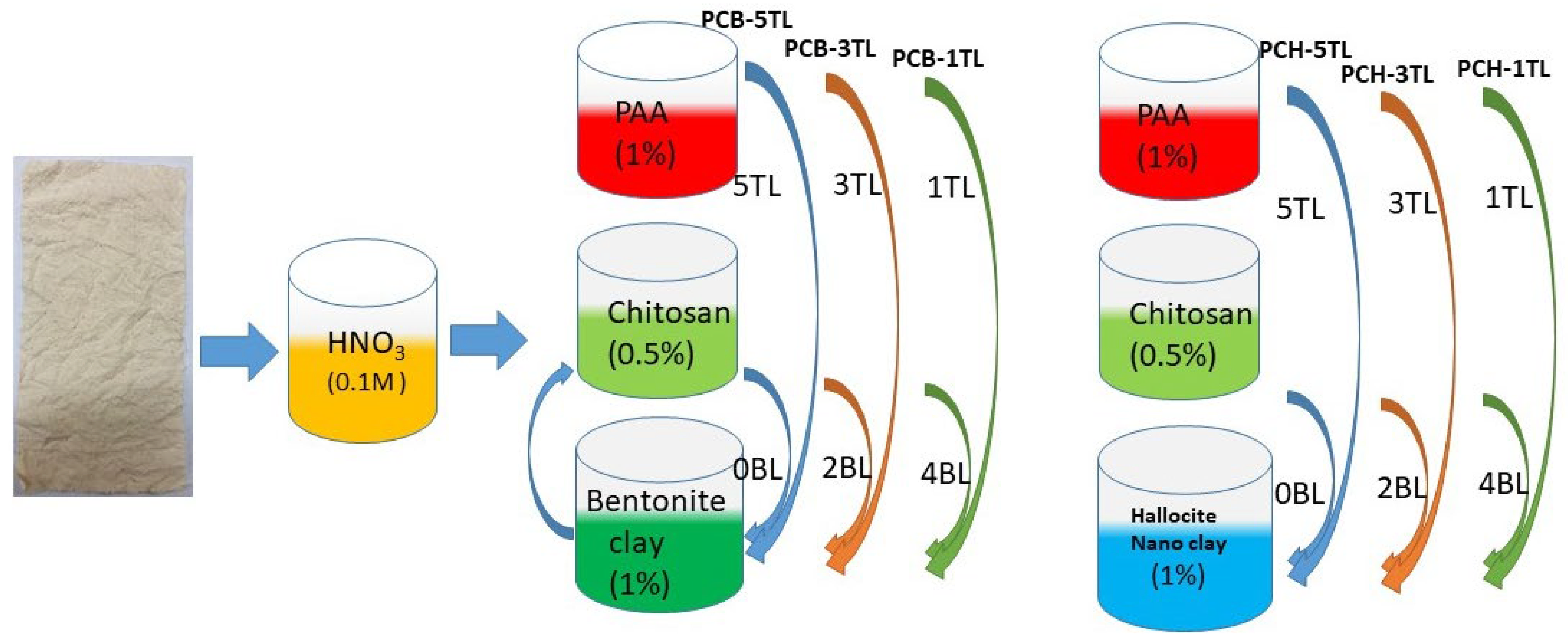 Inter Layer Effect of Poly(acrylic acid) on the Multilayers Assembly on Cotton Fabric Using Bentonite/Halloysite/Chitosan Composite Matrix