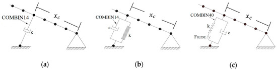 Figure 1b shows the elastomeric damper-cable interaction model considered herein. The element COMBIN14 was selected again to model the dynamic behavior of this damper. The characteristic parameters of this damper are the damping coefficient, , and stiffness coefficient, .