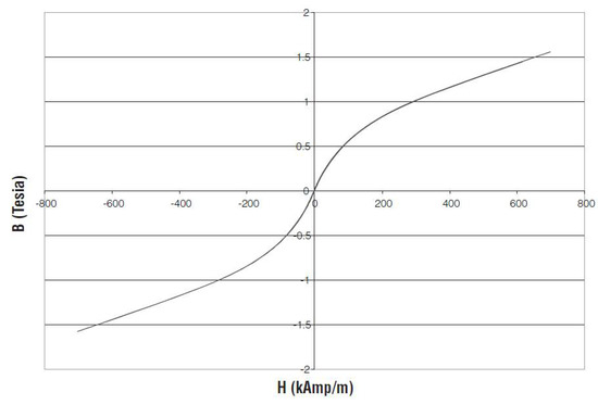 The MR fluid used in the damper is MRF-132DG from Lord Corporation (Cary, NC, USA). Lord MR Fluid-132DG is a hydrocarbon-based MR fluid, which contains micron-sized particles in a base fluid. When exposed to a magnetic field, the rheology of MRF-132DG fluid instantaneously changes from a free-flowing liquid to a semi-solid [22]. The properties of Lord MR Fluid-132DG are shown in Table 5. The typical magnetic properties of the Lord MRF-132DG Fluid, as provided by the manufacturer, are shown in Figure 5 [22]. Figure 6 shows the assembly of the proposed Energy-Harvesting Magnetorheological (EHMR) damper in a parallel configuration.