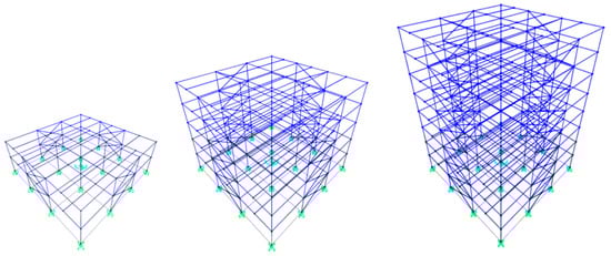 The innate viscous damping ratio of the steel buildings is assumed to be 3% for the first and the last significant mode of response [33]. The “Link element” of SAP 2000 [25] is used to simulate the set of masses–dashpots–springs [28] that accounts for the inclusion of SSI in seismic analyses. The seismic time-history analyses are initially performed for the steel buildings with fixed base conditions and then for the steel buildings on compliant ground (soil classes C or D) where SSI is taken into account.