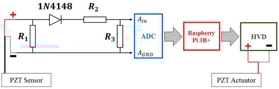 - Hagood, N.W.; von Flotow, A. Damping of structural vibrations with piezoelectric materials and passive electrical networks. J. Sound Vib. 1991, 146, 243–268. [Google Scholar] [CrossRef]