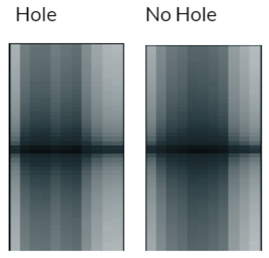 | Hole Left | The specimen with a hole placed so that the center is to the left of the transmitter |