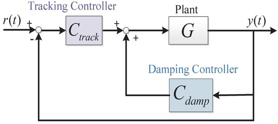 Since the formulation of Positive Position Feedback (PPF) in the early 1990s [1], positive feedback controllers (PFC) have been popularly applied to mitigate vibration problems arising from unwanted excitation of system resonance/s. Soon after Positive Position Feedback (PPF) controller was proposed, the full family of second-order PFC, i.e., Positive Velocity and Position Feedback (PVPF) [2,3], and Positive Acceleration, Velocity and Position Feedback (PAVPF) [4], have also been formalized. These controllers have since found popularity in a number of wide-ranging applications [5,6]. Due to their simplicity, ease of design, relatively good robustness to system parameter uncertainties and excellent stability margins, these controllers are often used in applications where multiple controllers are employed in tandem to deliver on several performance indices, for example: control of nanopositioning systems where damping controllers are implemented (in the inner-loop) to impart adequate damping to the dominant resonant mode of the respective axis; which in turn, facilitates the implementation of high-gain tracking controllers (in the outer-loop) as shown in Figure 1; enabling wide-band, high-precision nanopositioning [7]. In fact, the entire family of second-order PFC damping controllers—PPF, PVPF and PAVPF—have been adopted to enhance positioning performance of nanopositioning systems [4,8]. The PVPF and PAVPF especially when used as standalone controllers (without tracking controllers), have limited capability for reducing closed-loop positioning error and improving bandwidth. However, they exhibit robustness against external disturbances and improved closed loop stability. Though improved strategies to design these PFC-based control schemes have been proposed [9,10,11], they are sub-optimal due to the problem’s non-convex nature. Ref. [12] recently reported a convex PPF controller design using eigenstructure assignment. The stability constraints were found to be Linear Matrix Inequalities (LMIs) in terms of controller parameters. The solution proposed in here was based on the premise that the eigenvalues and eigenvectors of the matrix pencil are matched with that of the desired closed-loop system.