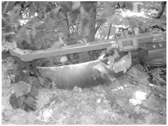 To measure the maximum angular displacement of the blade α0 while cutting the soil, a laser Doppler vibrometer was used that measured the maximum linear displacement xG0 of the gear housing (Figure 2). If d is the diameter of the gear housing, the experimental value of α0 is .