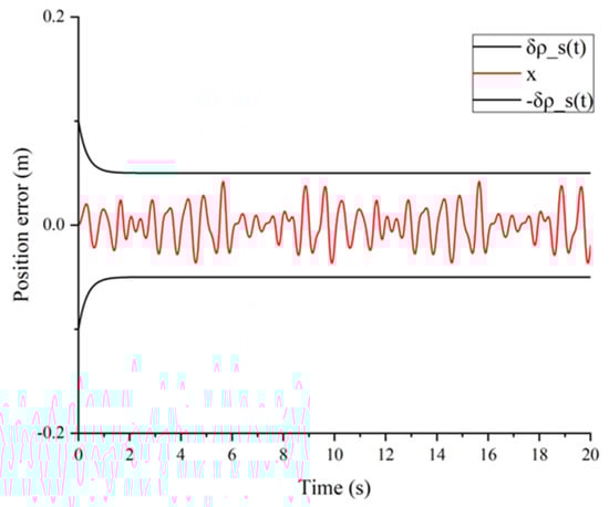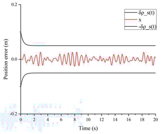where is performance function, which is strictly monotone and always greater than 0, and is the design constant where . The constant represents the maximum allowable size of the tracking error in the steady state. At the same time, the preset decline rate of the performance function represents the minimum speed of convergence of the allowed tracking error. The choice of an appropriate performance function imposes boundaries on the system output.