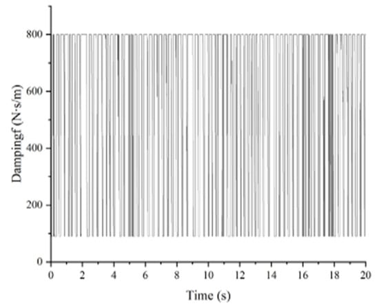 This section will use different excitations to evaluate the controller performance with numerical simulation. A traditional passive suspension is used to compare, in which constant damping is applied to replace the EMD. The controller’s performance functions are set as and . The other preset parameters are .