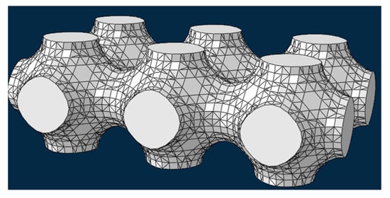 From our previous work [], three schwarz primitive (SP) unit cell specimens (50 mm × 50 mm × 50 mm) are fabricated using a stereolithography (SLA)-based 3D printer, as shown in Figure 2, and then they are tested subjected to uniaxial compression. Meanwhile, in this paper, the previously proposed model using an SP structure will be further designed, validated, and investigated under cyclic loading with normal pressure variations in the following sections.