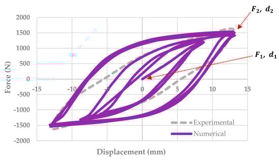where are applied horizontal displacements of the proposed model at point 1 and point 2, respectively (mm), and denote the corresponding shear force (N) at , respectively.