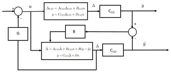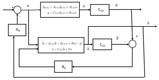 To calculate the transfer function of this observer-based controller we need to find the determinant of matrix. This determinant is greater than zero, therefore, is invertible and the transfer function can be calculated. See Figure 4 that shows the block diagram of observer-based controller.