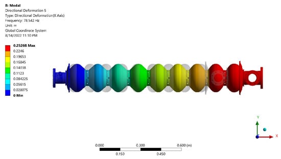 In this study, the goal is vibration control in a nine-cell superconducting cavity. To study the cavity structure and vibration analysis, the model has been simplified as shown in Figure 6. The closest structure to the simplified nine-cell cavity is a cylindrical shell with the length m and thickness of mm (See Figure 7). ANSYS modeling of the cylindrical shell with the same characteristics for the nine-cell cavity is the same vibration and modal analysis as the analytical solution with modified Fourier model.