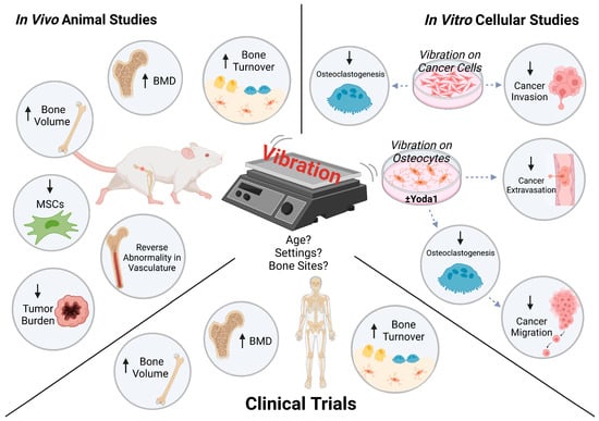 - Song, X.; Lin, C.-Y.; Mei, X.; Wang, L.; You, L. Reduction of breast cancer extravasation via vibration activated osteocyte regulation. iScience 2022, 25, 105500. [Google Scholar] [CrossRef] [PubMed]