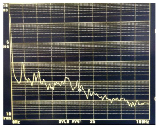 Thanks to the wide dynamic range extending for several decades, e.g., from ≈50 pm to ≥500 μm, the good linearity in the response, and the substantial bandwidth (typically several hundred kHz), the HFS SMI can easily supply the spectrum of modes of a mechanical structure. An example is provided in Figure 11, where we report the frequency spectrum of the SMI signal (Vout of Figure 10) obtained when pointing the device at the door of a car with the motor engine running. A complicated set of vibration modes of the structure is unveiled by the SMI measurement.