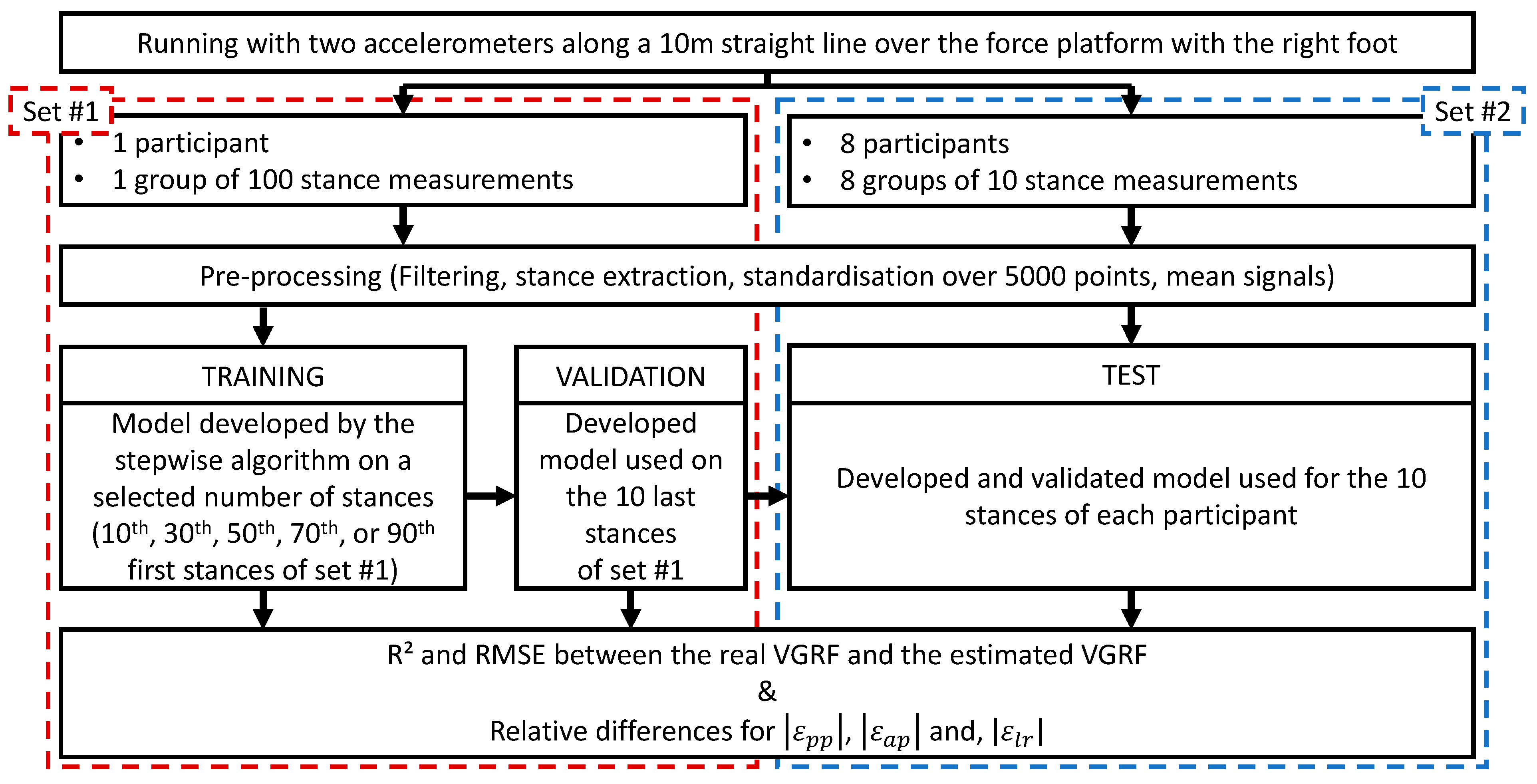 - Derie, R.; Robberechts, P.; Van den Berghe, P.; Gerlo, J.; De Clercq, D.; Segers, V.; Davis, J. Tibial Acceleration-Based Prediction of Maximal Vertical Loading Rate During Overground Running: A Machine Learning Approach. Front. Bioeng. Biotechnol. 2020, 8, 33. [Google Scholar] [CrossRef]