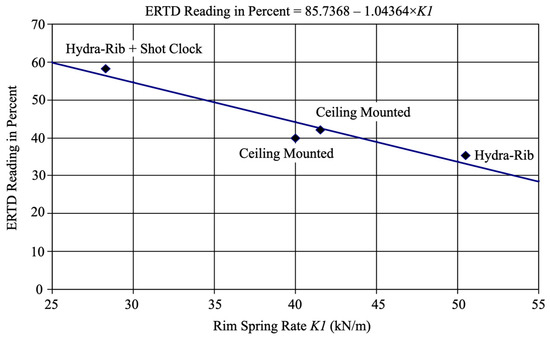 ERTD reading in percent versus rim spring rate K1 in kN/m.