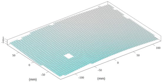 While the plate is nominally flat, it is essential to acknowledge that, post-production, the plate undergoes some degree of distortion, making it not entirely axially symmetric. The utilisation of stereo DIC allows for the capture and measurement of the three-dimensional curved surface of this nominally flat plate, as depicted in Figure 2. Moreover, the benefits of employing stereo DIC extend beyond geometric characterisation, enabling the accurate capture and analysis of out-of-plane deformations and providing a comprehensive understanding of the plate’s behaviour under varying loading conditions.