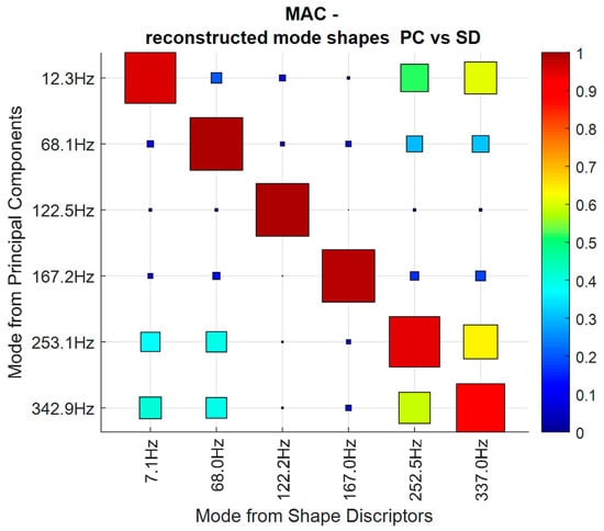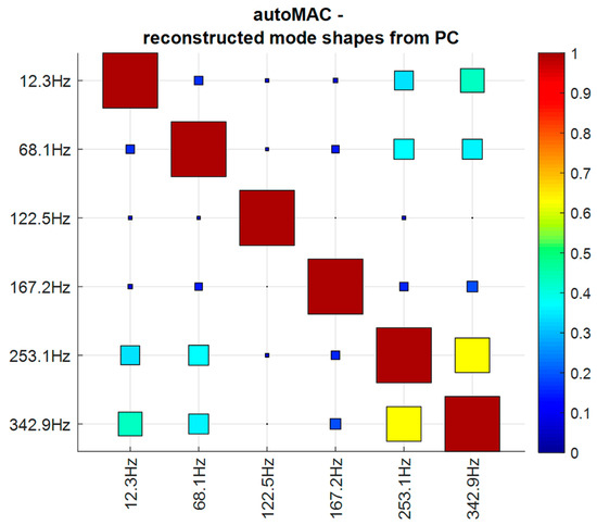 autoMAC of the reconstructed mode shapes from eigenvectors of principal components.