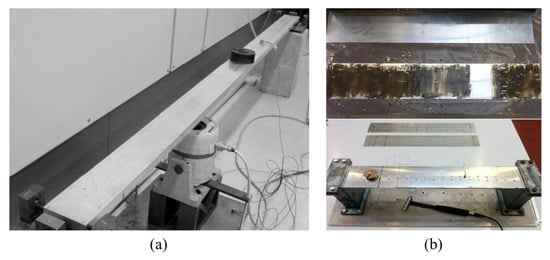 Wavelet transform has been introduced to natural frequency-based crack detection to alleviate the above issue. Zhong and Oyadiji [30] processed the frequency data of a beam carrying an auxiliary mass using stationary wavelet transform (SWT). The application of SWT involved two steps. Firstly, natural frequency curves were decomposed into approximation coefficients and detail coefficients, where the approximate coefficients were the high-scale, low-frequency components, and the detail coefficients were the low-scale, high-frequency components of the frequency signal. Secondly, the detail coefficients were thresholded to reduce noise. After these two steps, a new coefficient was obtained as the crack indicator, and the crack location could be determined by peaks in the curves of the new coefficient. An experiment was conducted on a cracked simply supported aluminum beam carrying a 4 kg auxiliary mass (see Figure 5a). The length of the beam was 2.4 m, and the spatial probing interval of the mass was 0.05 m; thus, 49 sampling points were needed. A challenge in this study is the determination of adequate sampling points. If sampling points are insufficient, the obtained natural frequency curve may not contain the information of cracks. If, on the other hand, the scale of the tested structure is relatively large, a dense measurement grid is required, and the number of sampling points can be considerable, which limits the application of this method in practical situations. In this situation, how to optimize the sampling interval [31] to minimize the effects of measurement noise requires further research.