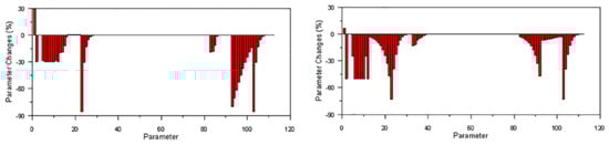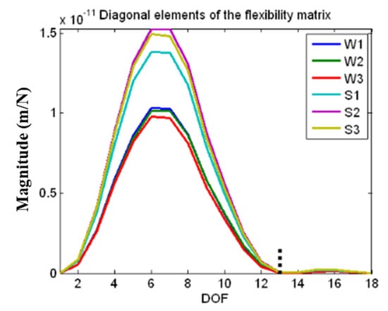 Methods based on the changes in elemental modal strain energy have shown reasonable accuracy in damage localization, while their performance in quantifying damage severity is poor. Striving to address this issue, some researchers proposed methods based on cross-modal strain energy [95,96]. Here, ‘cross’ means that compared with the expression of the traditional modal strain energy term, the expression of the defined cross-modal strain energy is similar, except that the modal vectors are replaced by the th modal vector from the undamaged structure and the th modal vector from the damaged structure. A review of modal strain energy-based methods was conducted by Wang and Xu [97] with a comparative study on a 3D off-shore platform structure. They classified the methods into four categories, namely, damage index method (e.g., [98,99]), modal strain energy change method (e.g., [94]), cross-modal strain energy method (e.g., [95]), and other methods. The pros and cons of four typical damage detection algorithms were demonstrated via the comparative study, and slight superiority to other algorithms was exhibited for the modal strain energy decomposition method in the first category.
